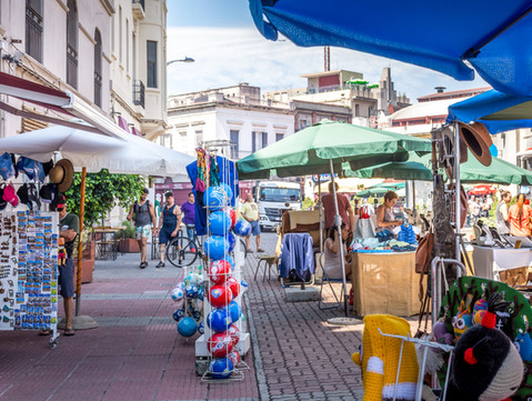 Not far from our hotel is the beginning of Peatonal Sarandí, a pedestrian only street that runs through the old city all the way to Plaza Independencia. Along the street, vendors with tables or blankets spread out on the pavement, offer all sorts of handicrafts. One gentleman had a table with fancy Mate gourds with metal straws for sale. Cafés , restaurants, art galleries, antique shops, and souvenir shops line the street. About halfway to Plaza Independencia is Montevideo's Cathedral and the beautiful tree lined Plaza Constitución.